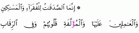 سورة التوبة إ ن م ا الص د ق ات ل ل ف ق ر اء و ال م س اك ين و ال ع ام ل ين ع ل ي ه ا