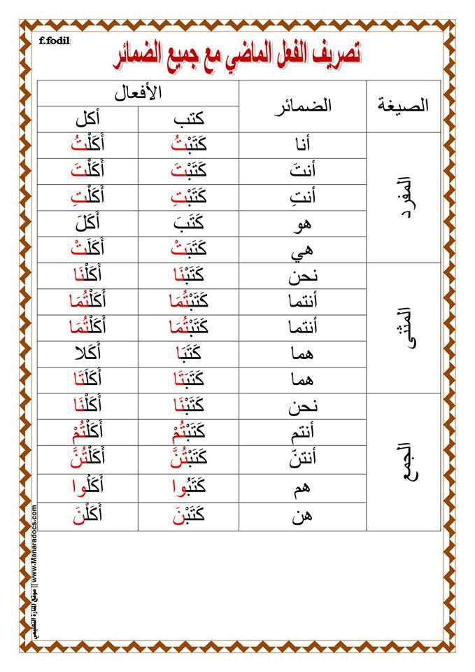 معلقات تزيين القسم درس تصريف الفعل الماضي و الفعل المضارع و فعل الامر مع جميع الضمائر