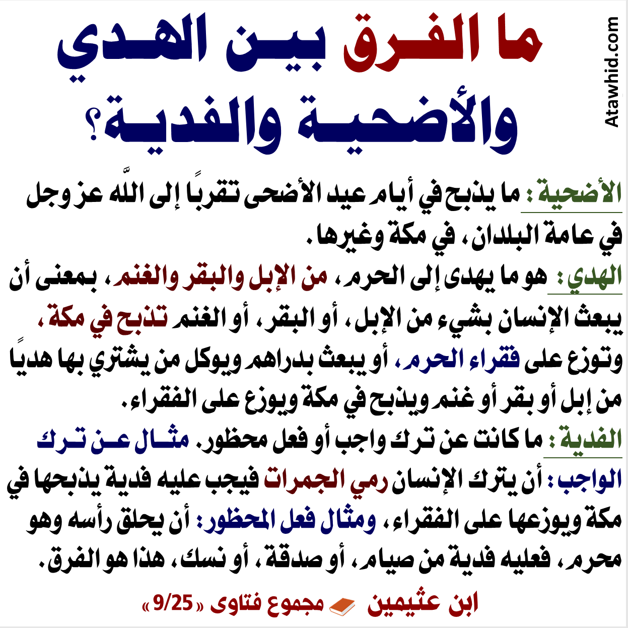 ما الفرق بين الهدي والأضحية والفدية د ي و ان الث ق اف ة Facebook
