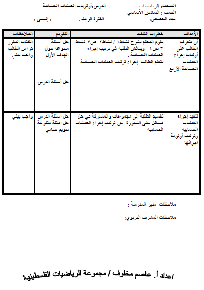 تحضير رياضيات للصف السادس الفصل الأول وفق النظام الجديد المكتبة الفلسطينية الشاملة