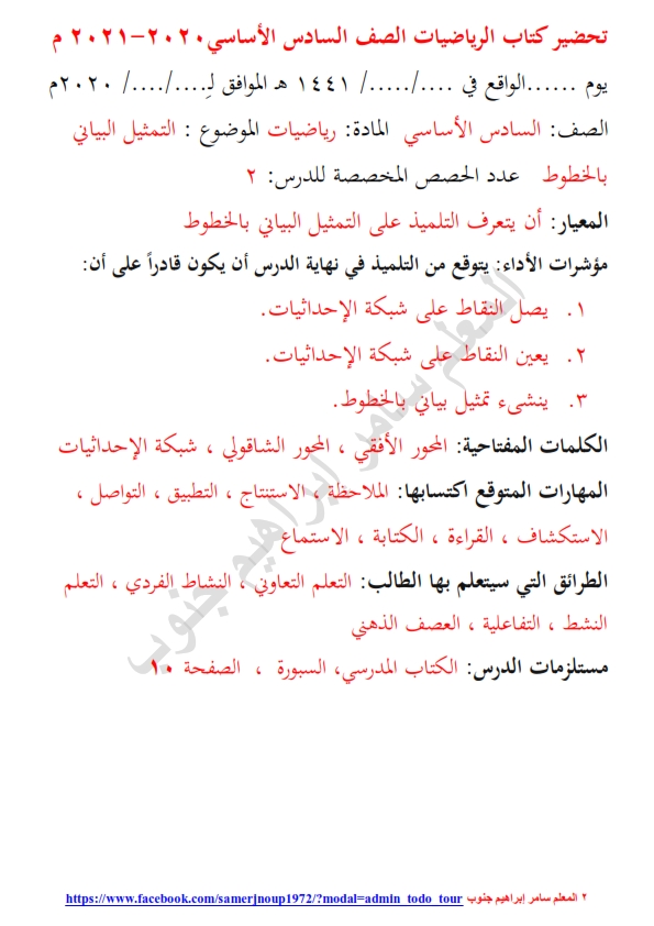 تحضير رياضيات للصف السادس الفصل الأول وفق النظام الجديد ارض اليايا