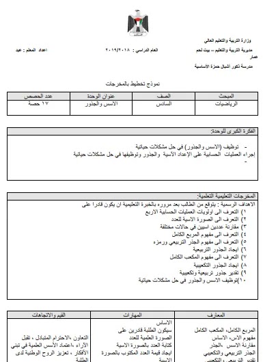 تحضير رائع لدروس مبحث الرياضيات للصف السادس الفصل الثاني ملتقى تعليم فلسطين