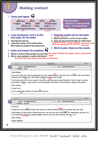حلول أسئلة كتاب اللغة الانجليزية للصف العاشر الفصل الأول المكتبة الفلسطينية الشاملة
