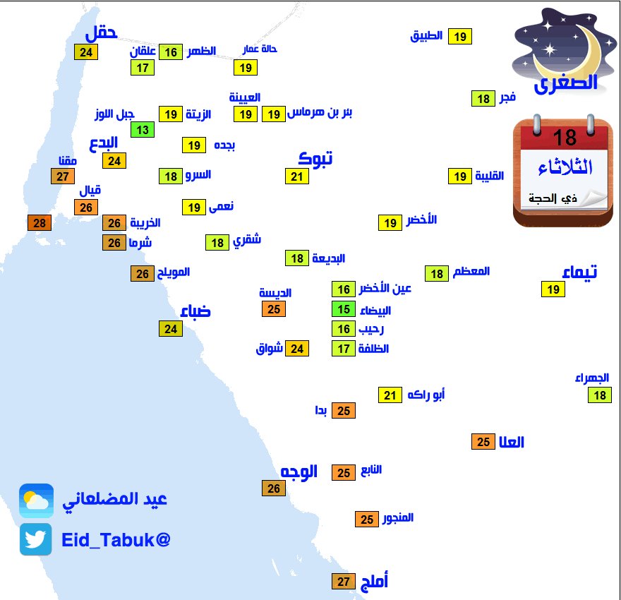 سناب تبوك V Twitter درجة الحرارة لمنطقة تبوك ومحافظاتها تبوك تيماء حقل ضباء املج الوجه