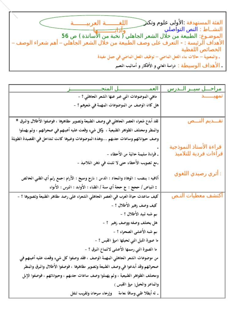 درس الفاظ نص النابغه الجعدي ومعانيه