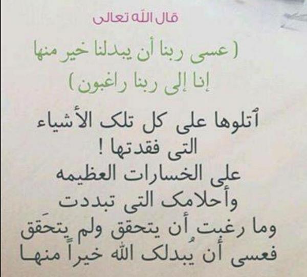 S H T A T Twitterissa إذا ضاعت عليك فرصه واحترق قلبك عليها أطفىء لهيبها بهذه الآيه عسى ربنا أن يبدلنا خيرا منها