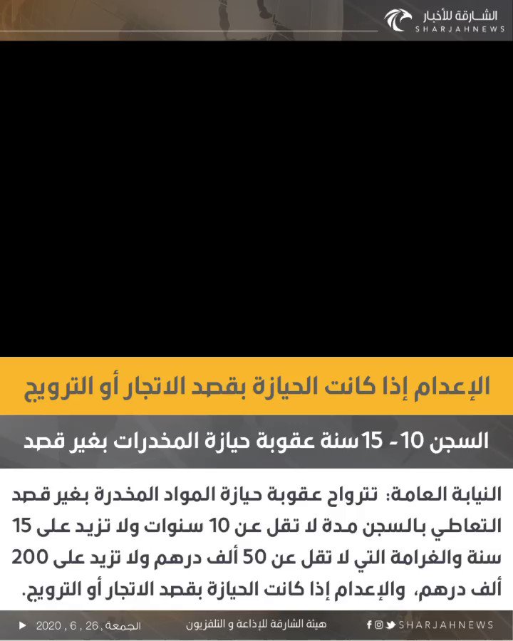 الشارقة للأخبار السجن 10 15 سنة عقوبة حيازة المخدرات بغير قصد التعاطي الشارقة للأخبار اليوم العالمي لمكافحة المخدرات