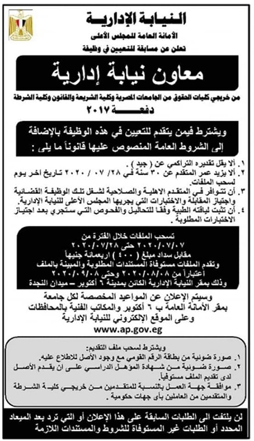 وظائف النيابه الاداريه 2020 وظائف خاليه