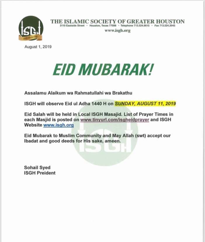 Usa Timings Of Eid Ul Adha Prayers In Texas Minhaj Ul Quran