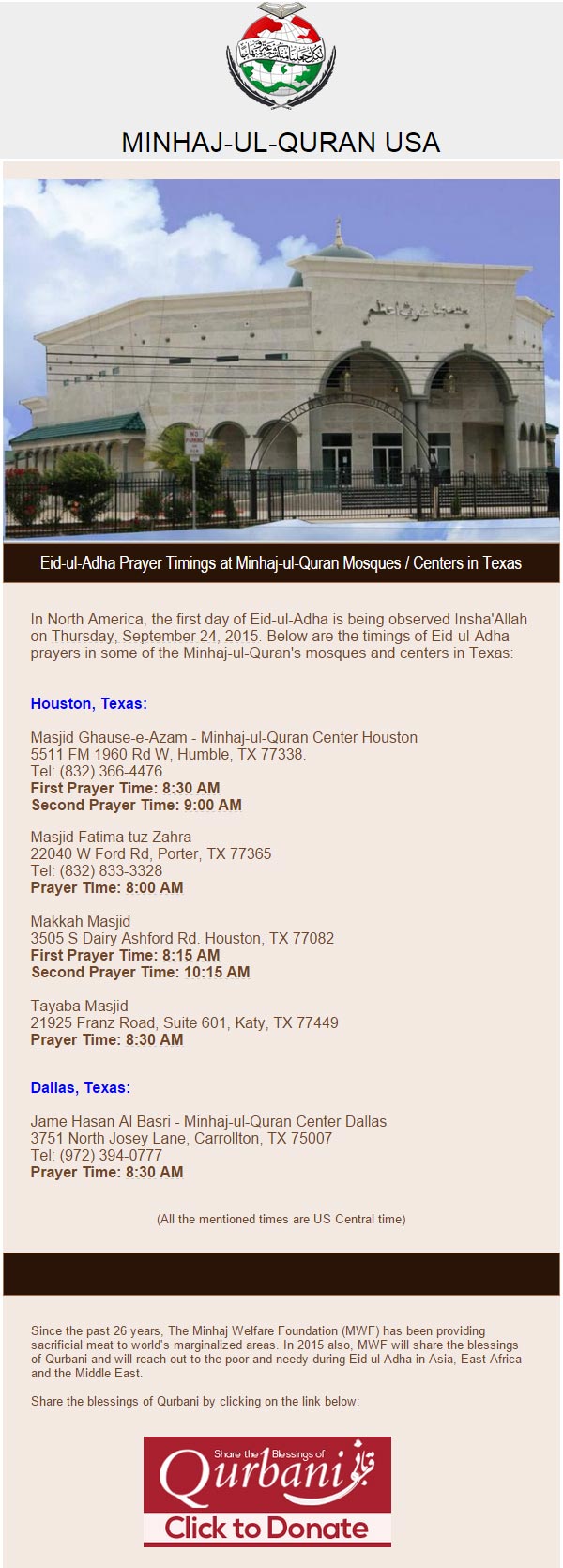 Usa Timings Of Eid Ul Adha Prayers In Texas Minhaj Ul Quran