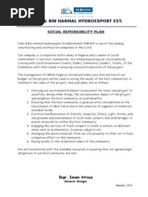 Nael Bin Harmal Hydroexport Est Social Reponsibility Plan