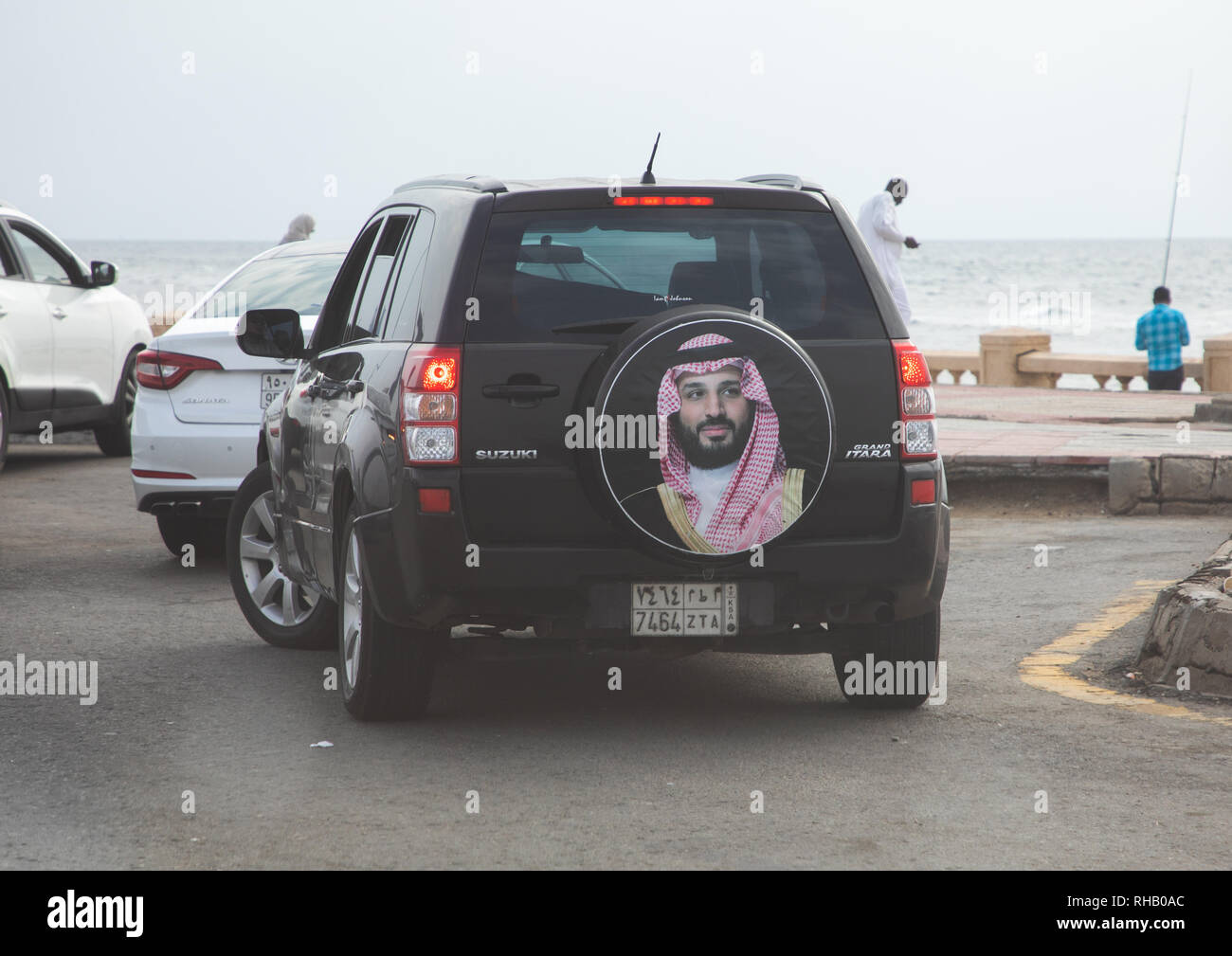 Crown Prince Mohammed Bin Salman On The Tyre Protection Of A Car Mecca Province Jeddah Saudi Arabia Stock Photo Alamy