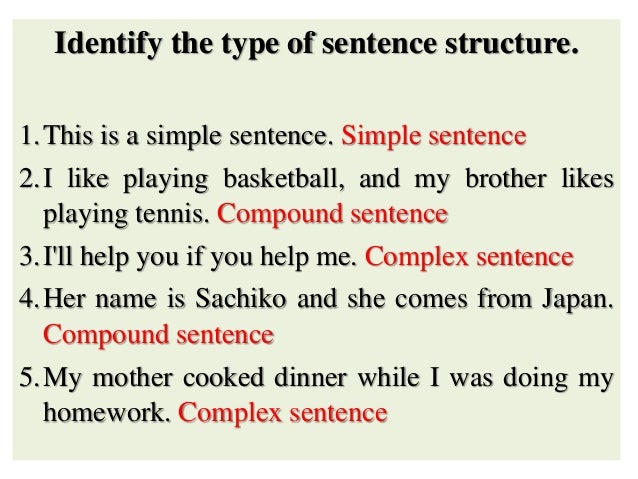 Sentence Structure S3 The Four Kinds Of Sentence Structure Identify Each Of The Following Sentences As Simple Compound Classifying Sentences According To Purpose